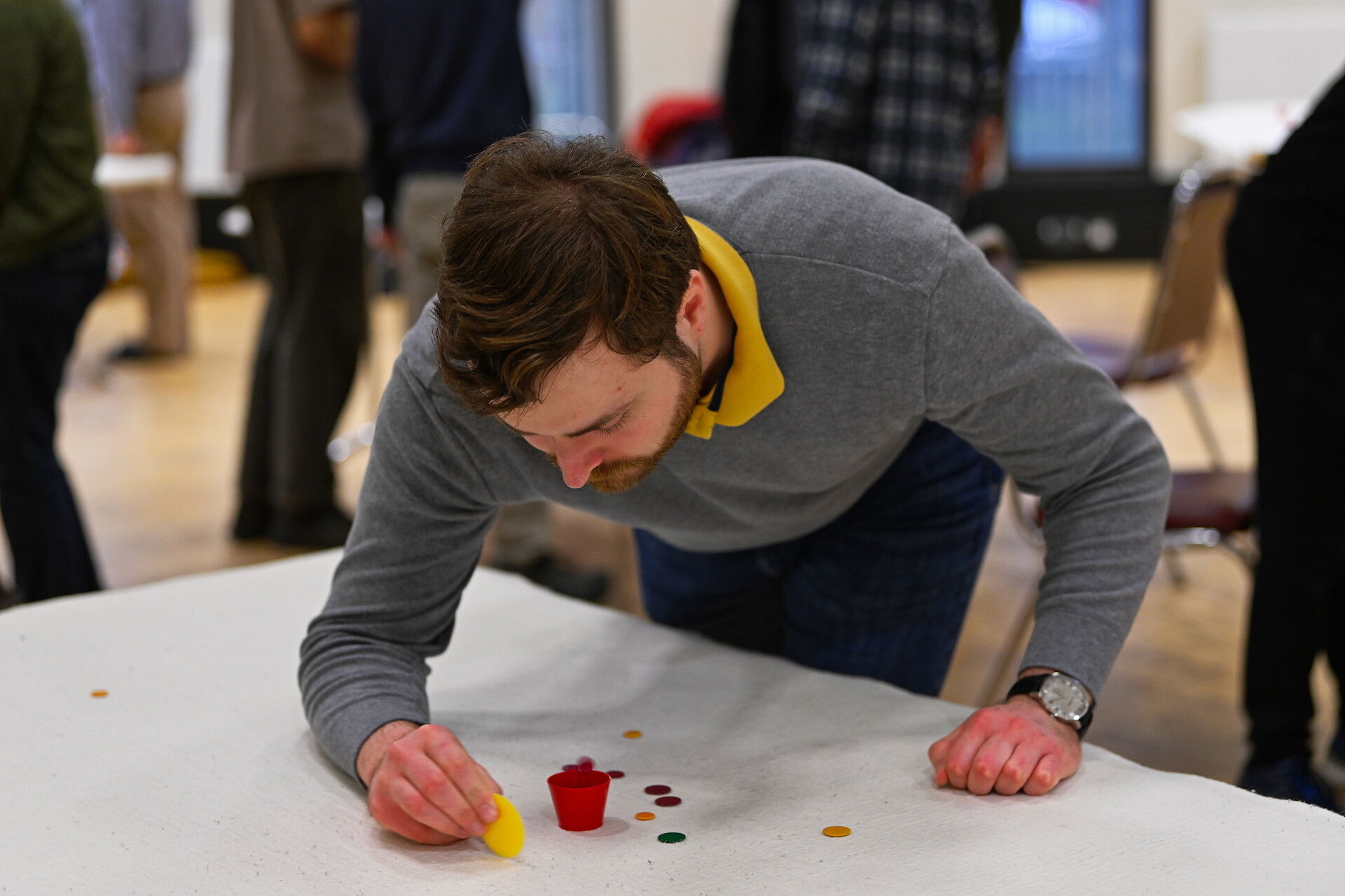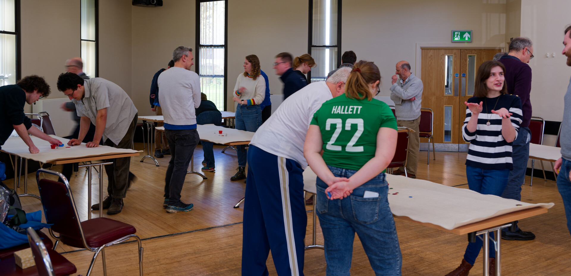 All images are copyright ©2025 Andrew Garrard, the English Tiddlywinks Association and Cambridge University Tiddlywinks Club. Licence is granted for use by the people in the photos and for any purpose promoting or reporting on tiddlywinks, so long as doing so does not bring harm to the person or reputation of the copyright holders or people in the images. Generally the smaller image size is 1080 pixels (FHD) on the longer axis and suitable for web use; the larger image is either original resolution or at least higher quality. If using these in external media, please copy the image rather than linking here — this web server is not suited to high traffic.